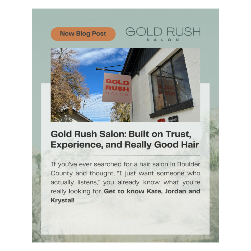 Gold Rush Salon is so grateful to have been featured this month by Old Town Lafayette. It means a lot to be welcomed into this community and to be able to share a little bit about who we are- our team, what we love to do, and the kind of experience we’re always working to create at Gold Rush.